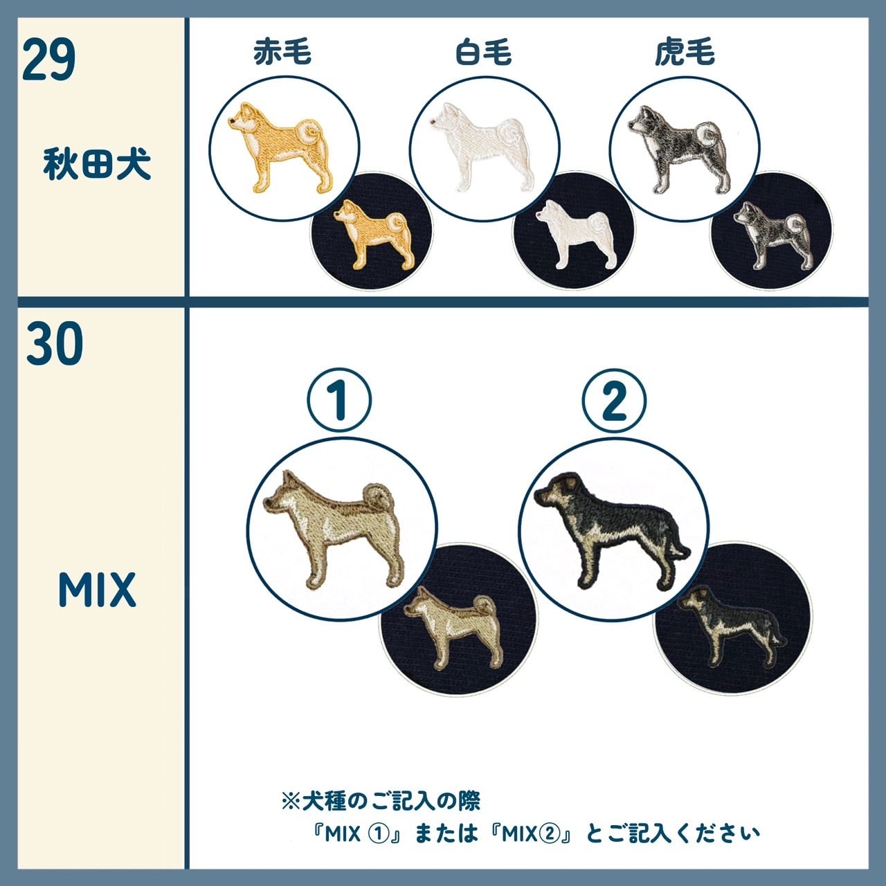 ・商品化されていない犬種や上記画像に載っていない毛色を記入された場合、ご連絡の上、キャンセルさせていただきます。