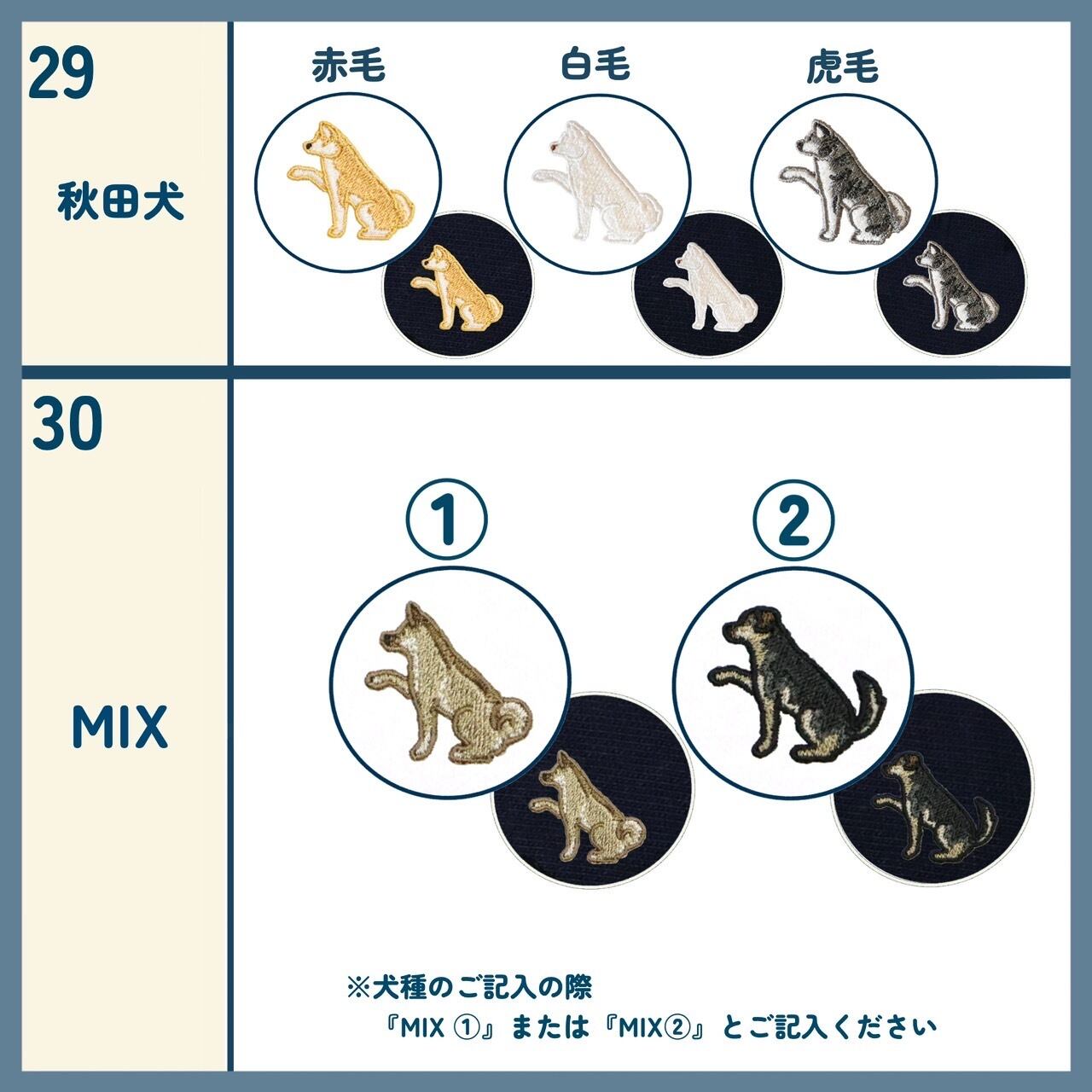 ・商品化されていない犬種や上記画像に載っていない毛色を記入された場合、ご連絡の上、キャンセルさせていただきます。