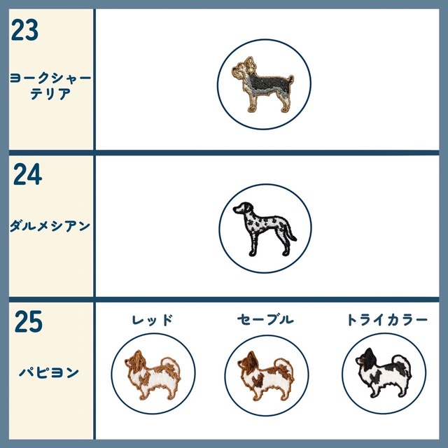 ・わんちゃんの犬種や毛色は、上記画像よりご確認いただき、画像に記載されている犬種名、毛色名通りに記入してください。