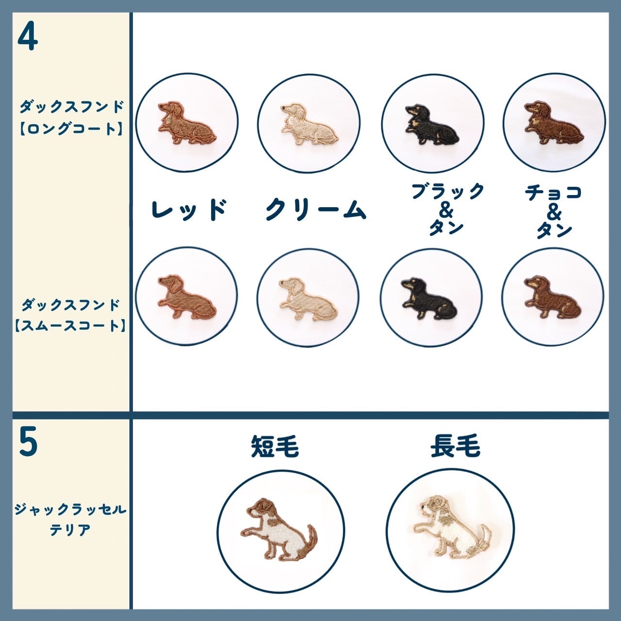 ・わんちゃんの犬種や毛色は、上記画像よりご確認いただき、画像に記載されている犬種名、毛色名通りに記入してください。
