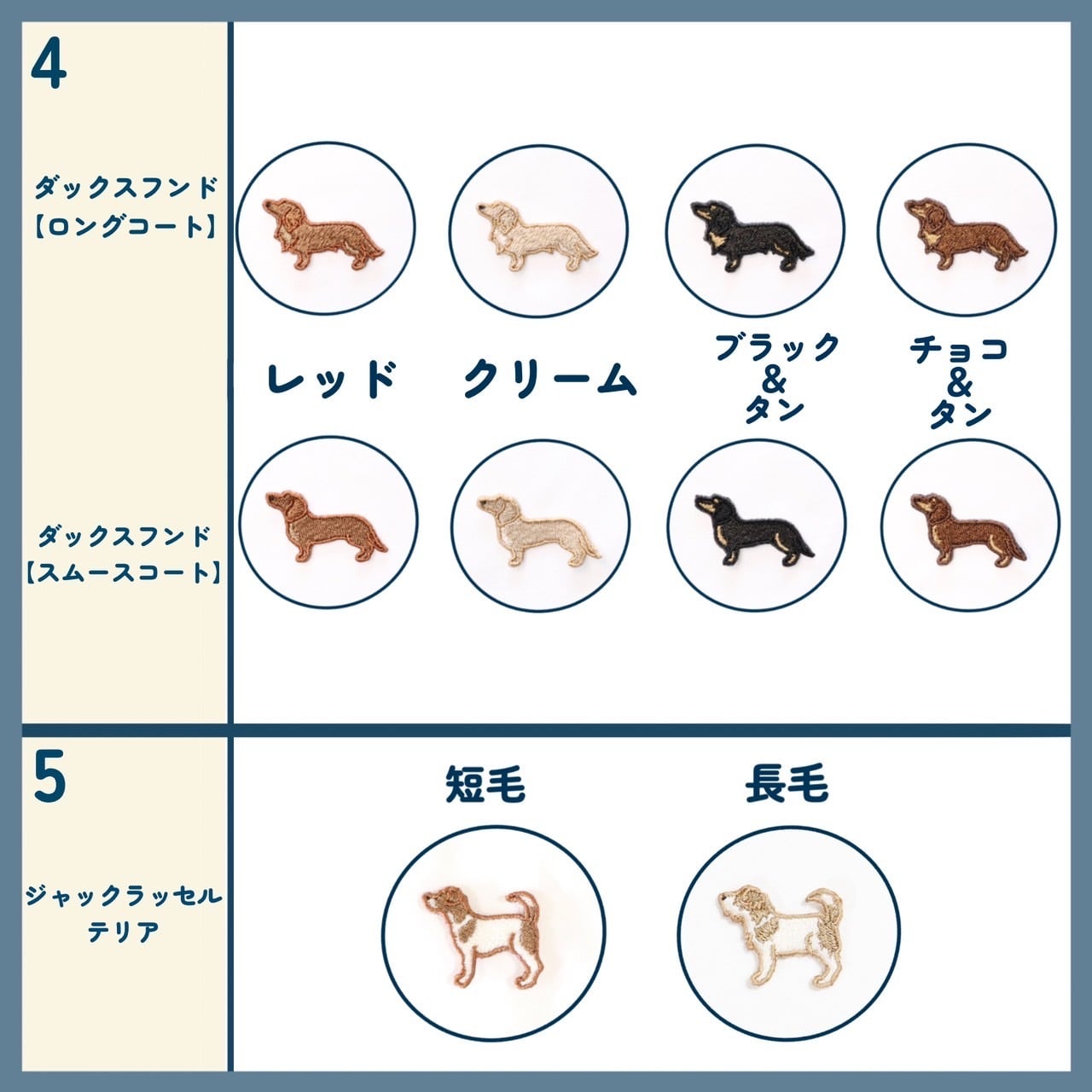 ・わんちゃんの犬種や毛色は、上記画像よりご確認いただき、画像に記載されている犬種名、毛色名通りに記入してください。