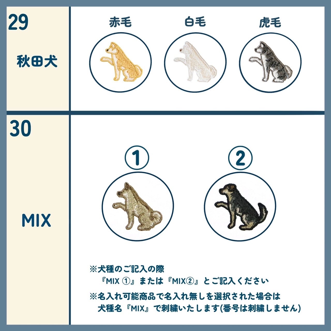 ・商品化されていない犬種や上記画像に載っていない毛色を記入された場合、ご連絡の上、キャンセルさせていただきます。