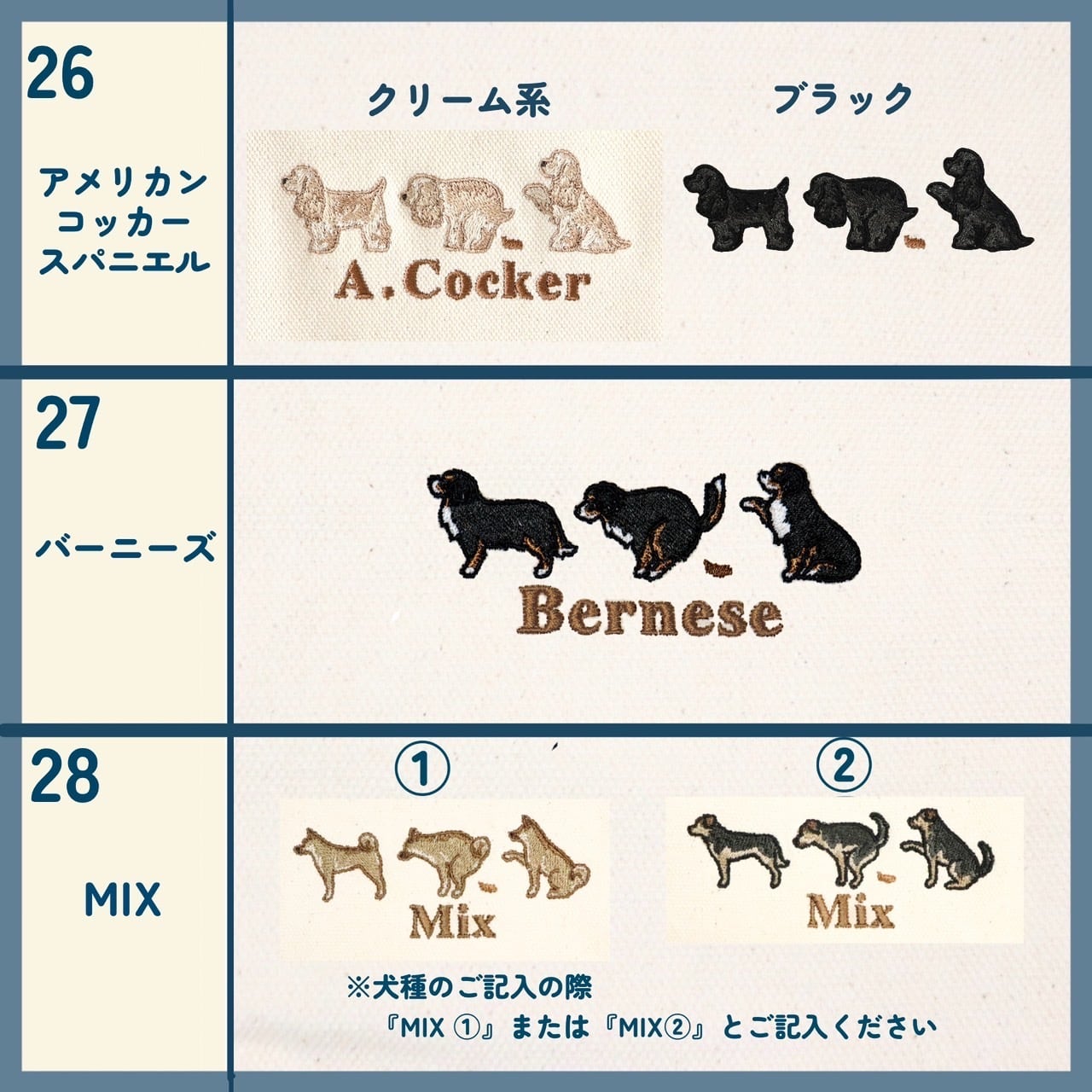 ・商品化されていない犬種や上記画像に載っていない毛色を記入された場合、ご連絡の上、キャンセルさせていただきます。